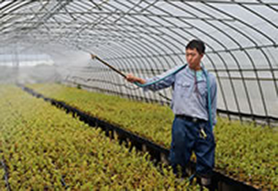 生産部門 主な仕事は、有機の小松菜とホウレン草の栽培です。異なる作物を順に作ることで土の養分の偏りを防ぎ、土を維持しつつ土壌病害虫の防除を図る輪作体制を作り、連作障害が起きないように配慮して作業を行います。